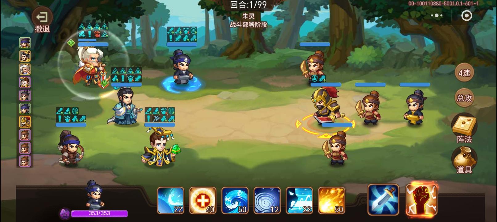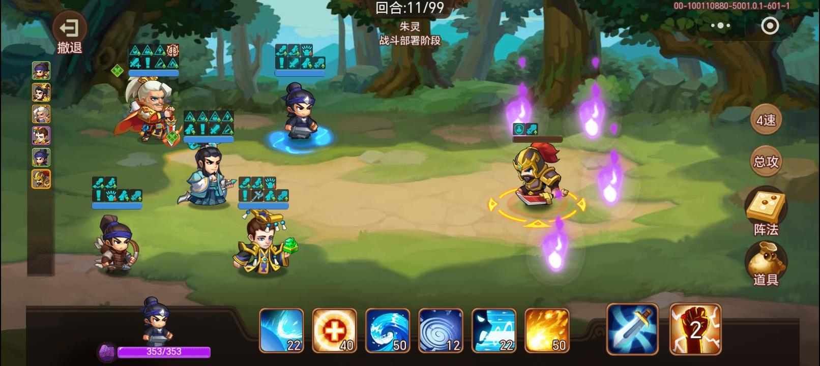 紫色朱灵连绿色朱灵的伤害都扛不住,真的太废了,第一个直接被打,第二个被变成魂魄状态的朱灵打倒了。只用朱灵打了朱灵。其他的都当辅助。