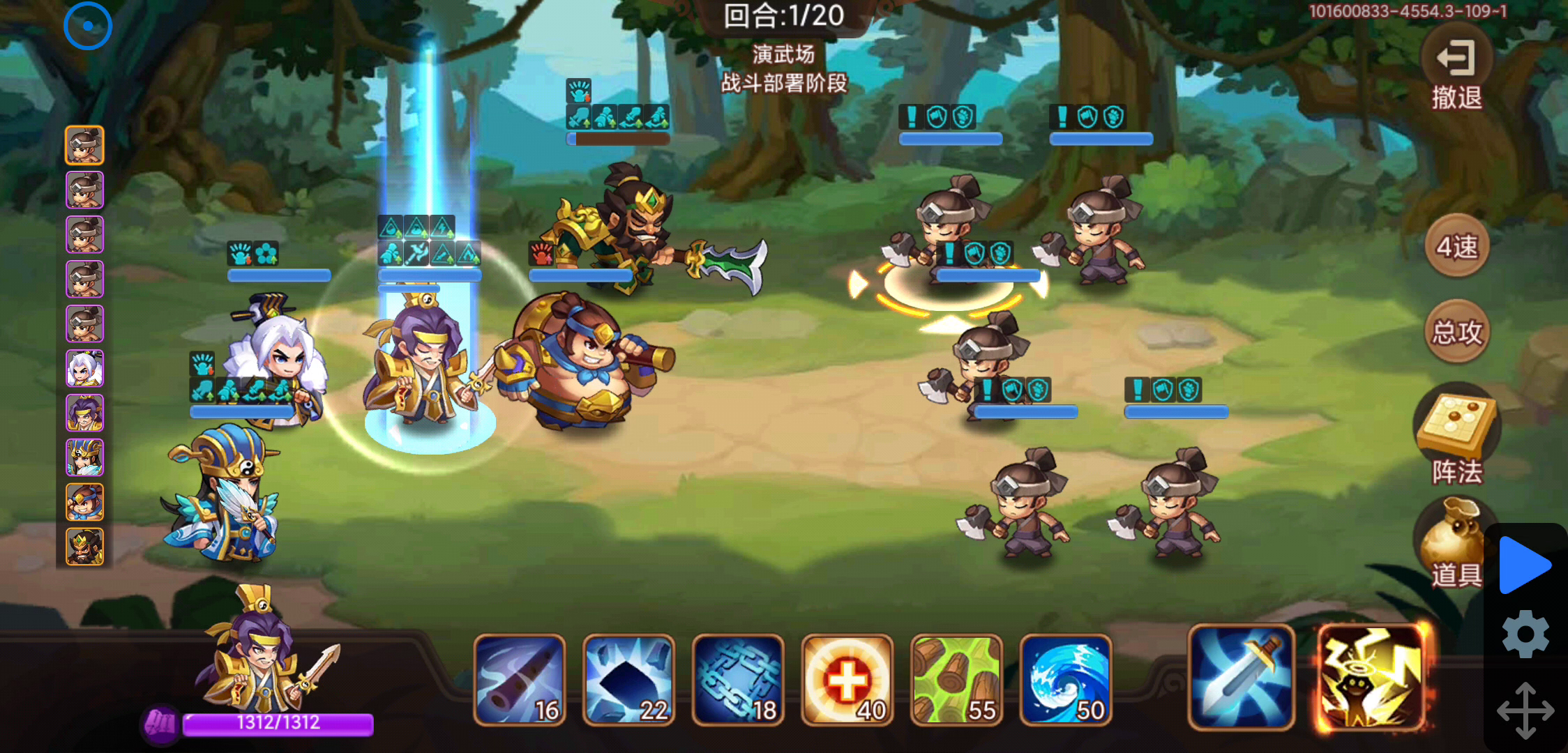 比较适合伤害不够,又想稳定打终极演武的(大佬随意,这个只是伤害低的打法),如果想要更稳定,可以开箭锋阵,进第三波怪再等一下贾诩技能。