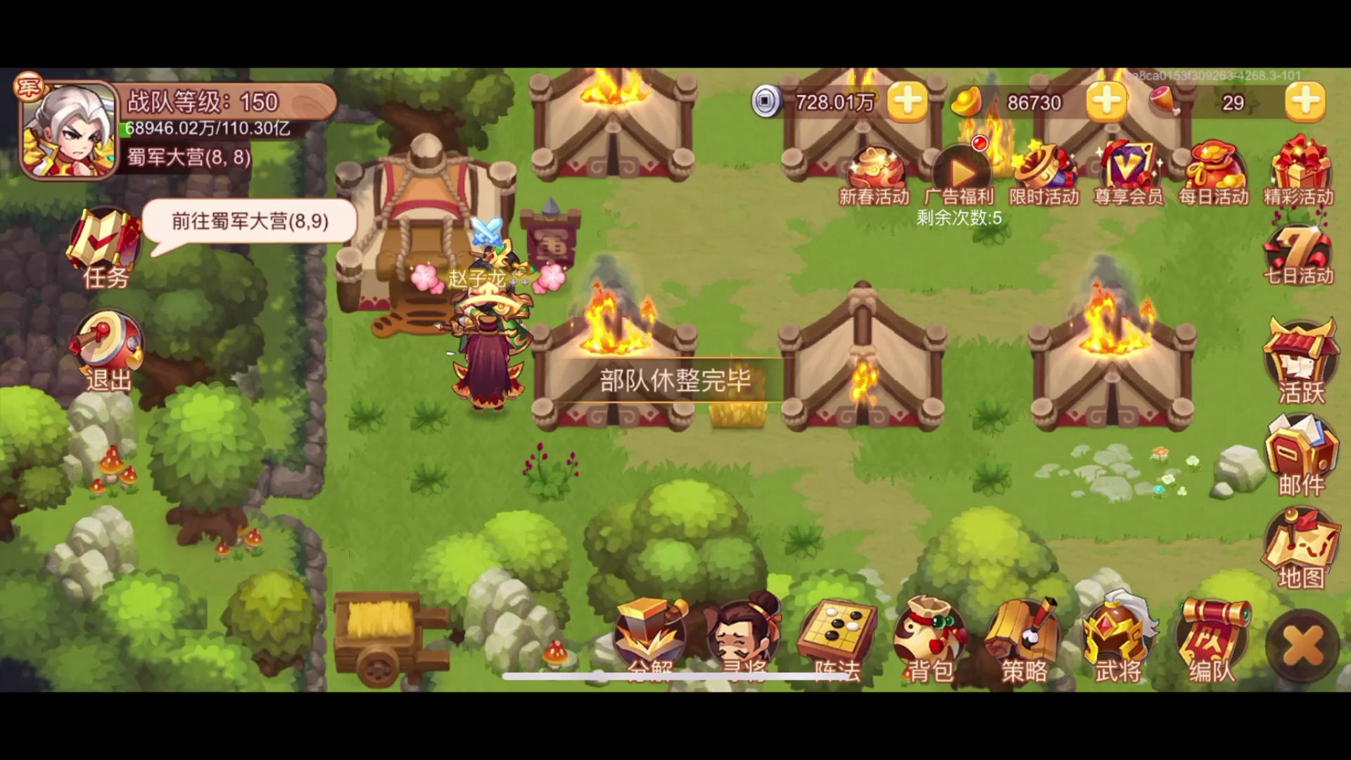 阵容:1董卓(许褚加二),2吕布(典韦),3诸葛,4夏侯渊(黄忠,乐进),5姜维加二(黄忠) 可以混搭 装备:两鬼面,七星四件套(有轮回紫金更好) 阵法:箭锋阵 策略及装备后面附图
