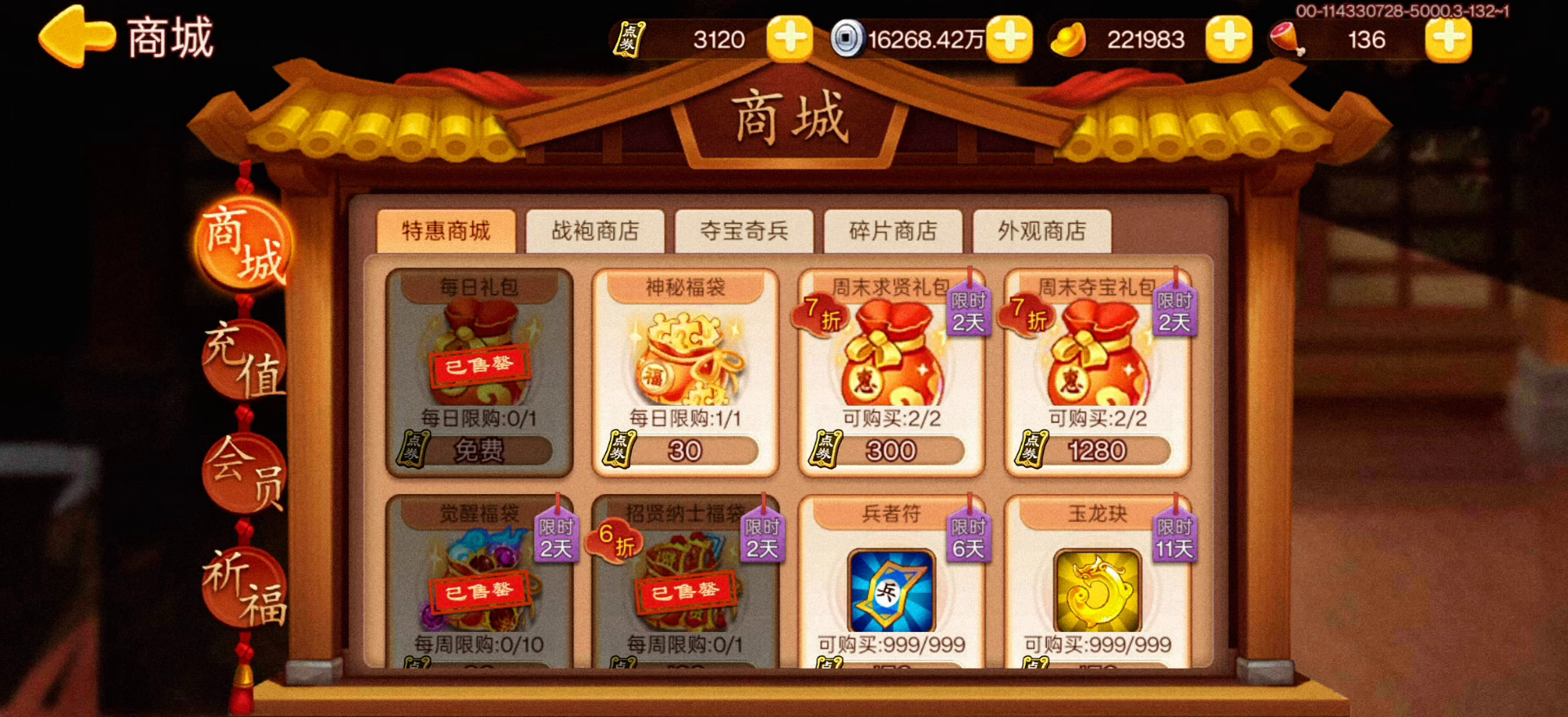 注:所有活动需更新至5.0.00及以上版本才能参加,请玩家及时更新最新版本,具体活动内容以游戏内为准。【活动1:求贤若渴】活动时间:2025年12月12日10点 - 2025年12月18日23点活动内容:活动期间程普、孟获、司马懿、曹仁求贤招募获得概率提升。【活动2:每日消费】活动时间:2025年12月12日10点 - 2025年12月18日23点活动内容:活动期间每天累计消费至指定额
