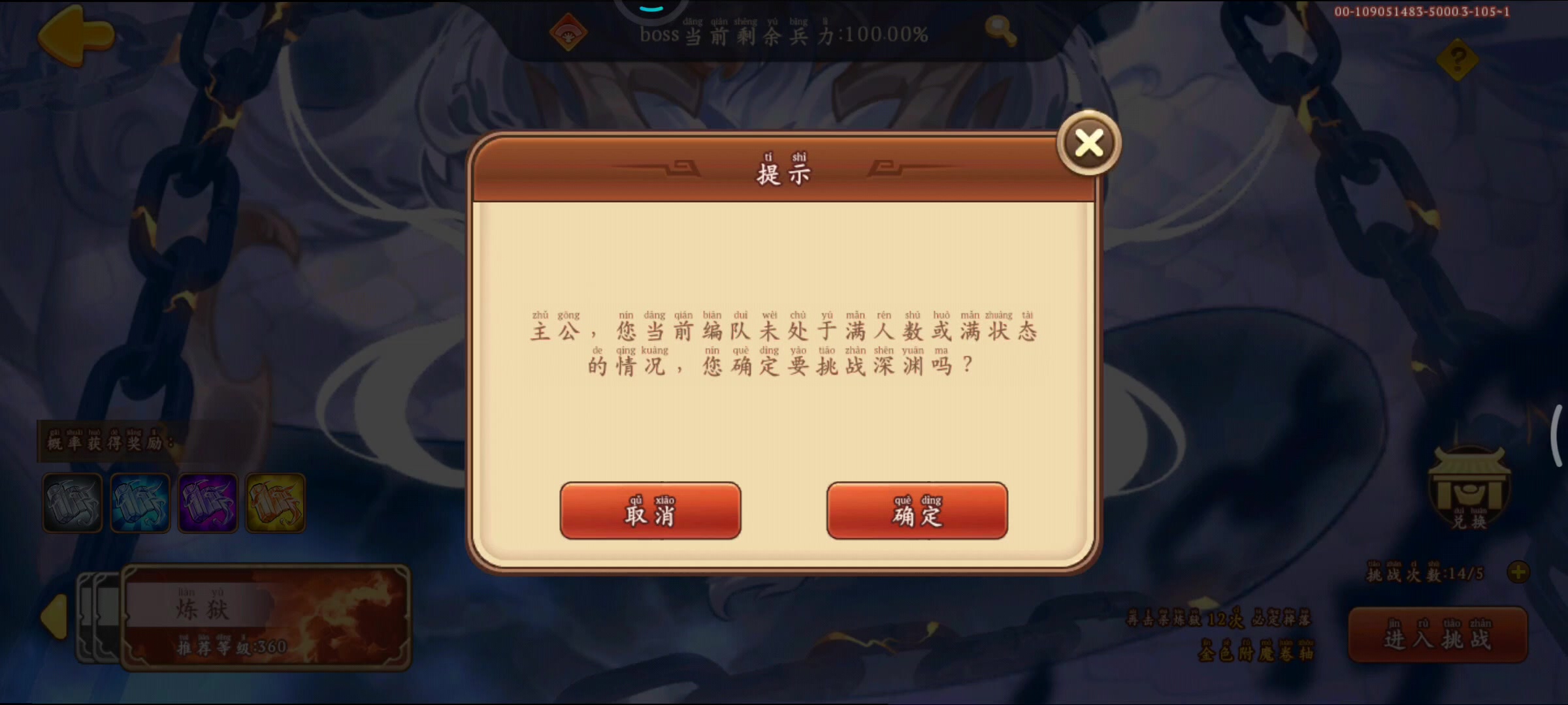 小刘月套风遁 黄忠4兽+穿云爆伤,25魏国附魔+封喉 诸葛七星5件+攻势 姜维血量最低,风遁+攻势+轮回 阿斗血量最高,风套+百封弓 曹阿瞒不吃开刃,其他4位攻势可以叠加。 最好一次16回合搞定,看小刘和黄忠连击。 这个视频小刘拉垮不回CD[表情_捂脸哭][表情_捂脸哭] 前3回合打法很重要,杀大曹仁时注意给黄忠免策,和姜维免策,避免曹阿瞒破阵。后续死人了可以用诸葛技能回阵!