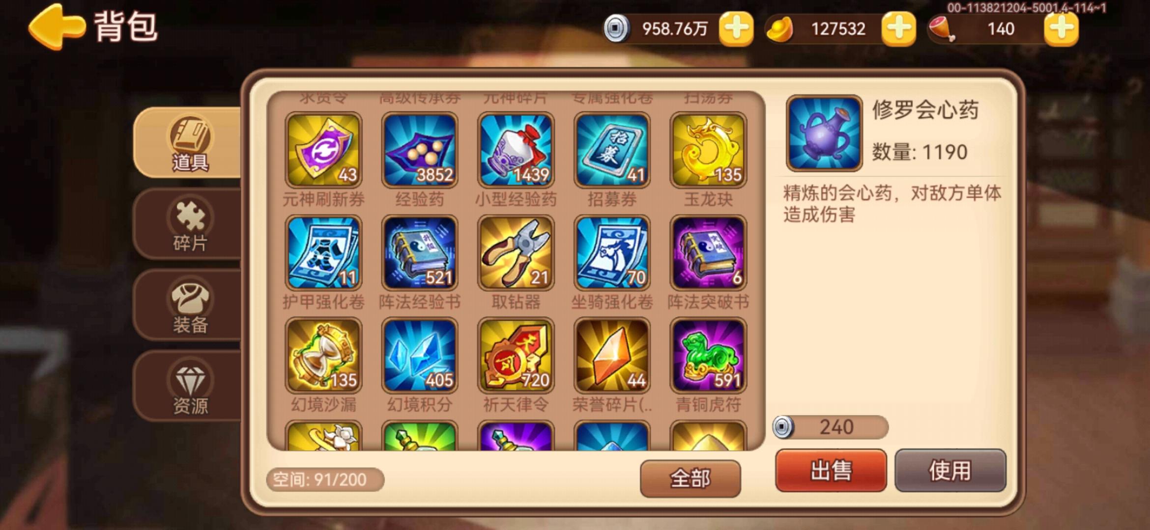 七星齐,鬼齐,百川缺一,月光缺一,风缺一,蝶缺一,滑稽缺二,酒缺四,三狼二火齐,五兽缺三