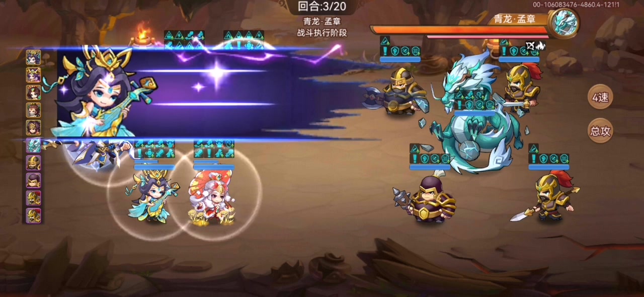 无视大佬,平民可以参考下。 阵容: 吕玲绮五七星带专属飞沙 马超看视频出手顺序自调,装备随意 曹植法装最好的东东带上就行,主要清前两波小兵,节省回合,后续墨迹墨迹还是有点输出,毕竟不是主C。 徐庶同上马超就好,随意。 张郃第一个出手,月套。 以上视频张郃漏了一回合技能! 只要张郃技能间断一个回合,就多一回合输出! 马超和吕玲绮都是飞沙鞋子! 整体阵容装备要求:曹植带自己最好的法系装备,2个飞沙鞋子