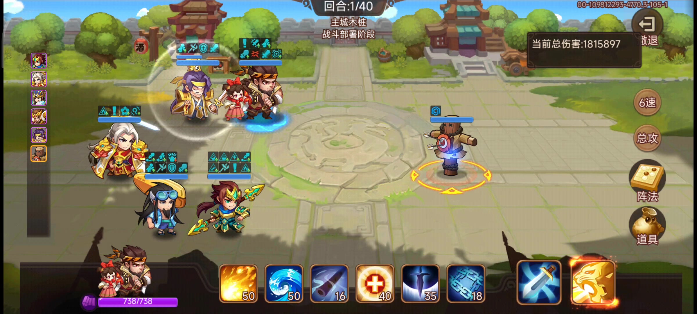 有点的聪明难民,离间计你自己的伤害真好用 最基本阵容,许褚新手必备,法正可以派遣,其他都是完全免费的 看了别人是怎么打的,就好打很多了,第一队一定要上个孙权自动减对面伤害,第一队是炮灰让对面放玩技能就随便玩弄,可以全上弓箭手加距离阵法离间计他们打自己也一刀就死了,二队给许褚鱼鳞阵法很肉,这样打夸百级打也很轻松 要注意!!!boss不能打,打了对面就会增加难度根本打不过我被坑了,最后一天打有几百奖励