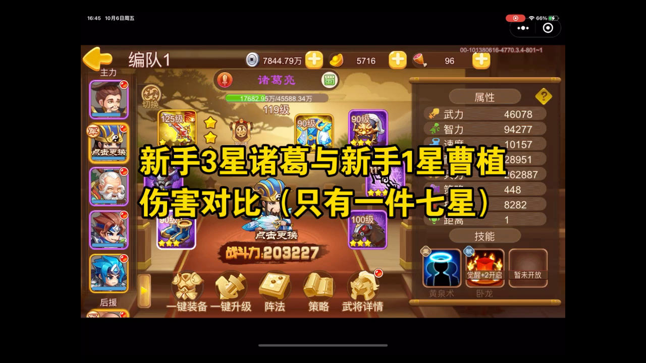 新手1星曹植被动看着好看才150%智力,华而不实,等着2星再配合诸葛用用吧