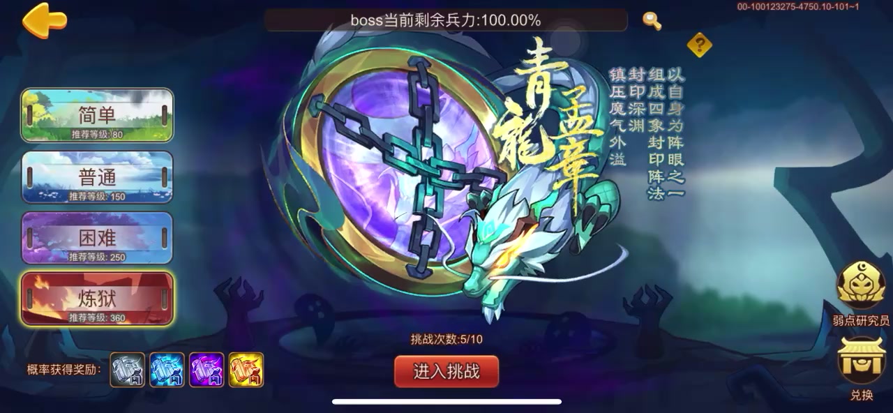 伤害打满一次就能打42%的血,两三次就打过了,速度还是比较快的。 但有几个注意事项: 1、张宝穿鬼套且不能带金马,否则不能保证处于十号位(否则第三回合刚复活就会被十号位穷奇打成亡魂,少一回合输出) 2、歌颂附魔(紫色附魔,对应的金色附魔应该也可以)可以免疫貂蝉的主动以及被动的离间,但紫金冠不行。 视频中甄姬、诸葛有歌颂附魔但张宝没有,但直接变亡魂之后其实也没影响了,所以甄姬技能其实给马良最好(视频