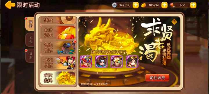注:所有活动需更新至5.0.10及以上版本才能参加,请玩家及时更新最新版本,具体活动内容以游戏内为准。【活动1:求贤若渴】活动时间:2026年3月6日10点 - 2026年3月12日23点活动内容:活动期间张郃、邓艾、孟获、伏皇后武将求贤获得概率提升。 【活动2:每日消费】活动时间:2026年3月6日10点 - 2026年3月12日23点活动内容:活动期间每天累计消费至指定额度,即