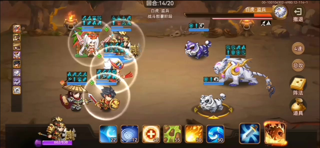 一队,五鬼张宝(要专属),带散件马超和司马懿,散件穷奇(需要开局放技能),带个输出,有七星套更好,没五鬼套张宝就换成带专属郭嘉,其他人装备七星或鬼面甲。 二队月套+2乐进(速度要足够高,能到多少是多少),风套+2董卓,带+1马四星徐晃,散件许攸(更强的公孙瓒),剩下一个位置放输出,如七星诸葛亮,百川曹植也可以 贫民简要打法 一队长蛇阵,二队建议八卦阵,策略选土水回血陷阱眩晕 对面一队全是物理将,先
