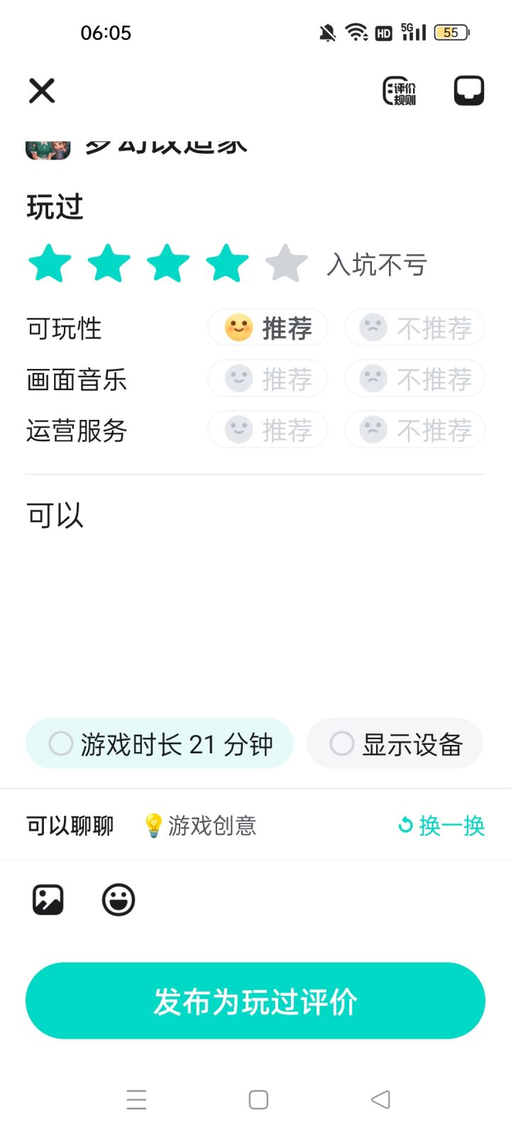 玩过 46 分钟后评价(总时长 55 分钟)