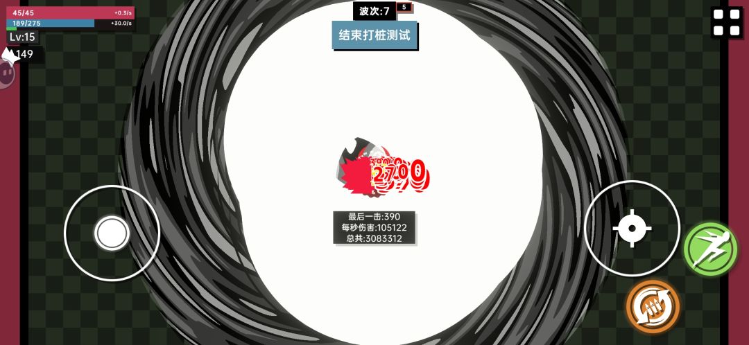 第七波秒傷10w 第十五波秒傷80w 我宣佈最強武器是傷害和能量傳遞效率翻倍,升級遇到能量傳遞效率必選 最強子彈是發射8顆土屬性子彈,只需要兩個生成節點就能讓第三級及後續子彈翻64倍,如果前兩級均搭載再來三發配合9宗師那第三級子彈基礎數量就是(8+3+3)*(8+3+3)*3=588