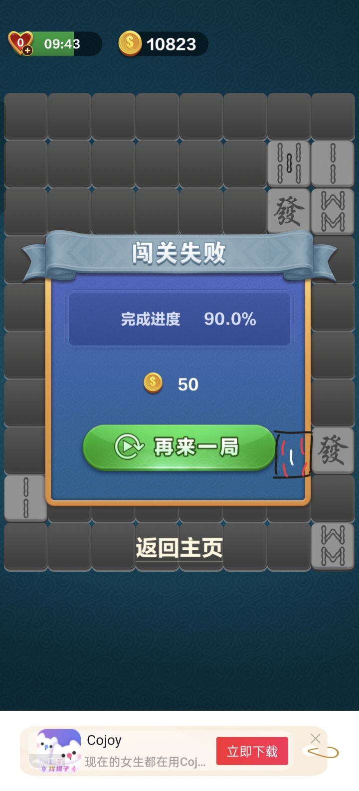 广告烦死了,还点不掉,只能退出重进,还要新的一关,结束之后又是广告,又要重新进