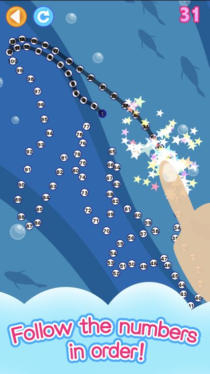 您所要做的就是从 1 到下一个更高的数字画一条线。这是一个非常简单和非常有趣的游戏应用程序。当您将点正确连接到末端后,就创建了一个插图。通过按顺序连接数字,您可以学习数字的顺序并培养您的识别能力。这也是练习绘制实线的好方法。连...