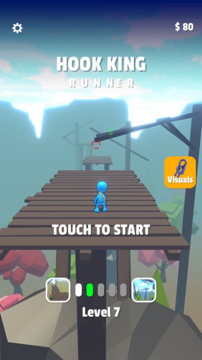 Tap to launch your hook, control your swing and release the touch to jump from the rope passing the obstacles.