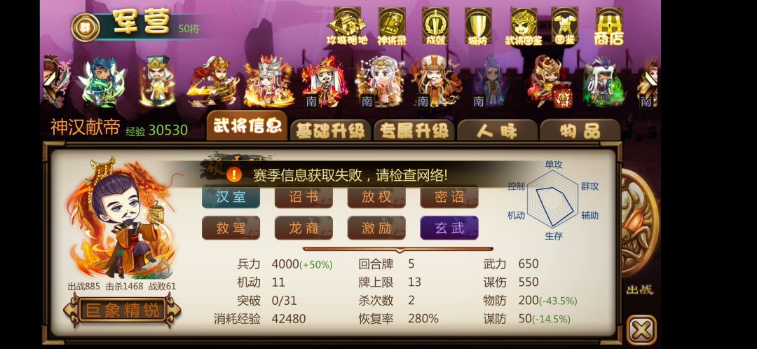 曾是南蛮包第一神人,有人买南蛮就图一个木鹿,现在虽然不能无限驱虎驱牛,但仍是手操强将,在攻城守城特殊关卡中有着极强的作用。 核心技能:驱牛:个人认为算核心技能,因为驱虎和造谣都是为这个技能服务的。驱牛也是木鹿前期主要输出方式。 兵种:可选择水镜,可以让牛牛更长,直捣腹地,也可以选择诗人,让牛牛更硬,威猛异常。至于哪个更好就见仁见智了,有人喜欢长,有人喜欢硬,不能说越长就越好,也不能说越硬就越好,主
