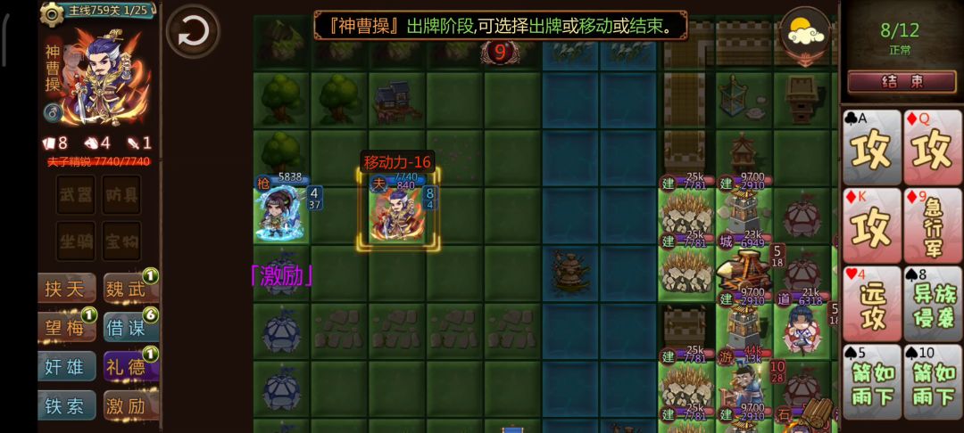 偷袭粮仓这关只要打完后面5个粮仓就可以获得胜利,所以重心不是在怎么杀完对面而是怎么拿下这5个粮仓,而粮仓技能只能用火烧或者自然伤害打到1血,其他伤害为10点 曹操:兵种:夫子(主打一个没用),主打激励给猛攻,技能书:礼德控梅花加机动 凌统:(四级银枪)绕后拿下粮仓,技能书:吴子3级 凌统是一个比较特殊的武将(可以无视障碍风行)还能造成自然伤害,在这一关里面可以发挥极大的作用 首先曹操给猛攻(凌统风