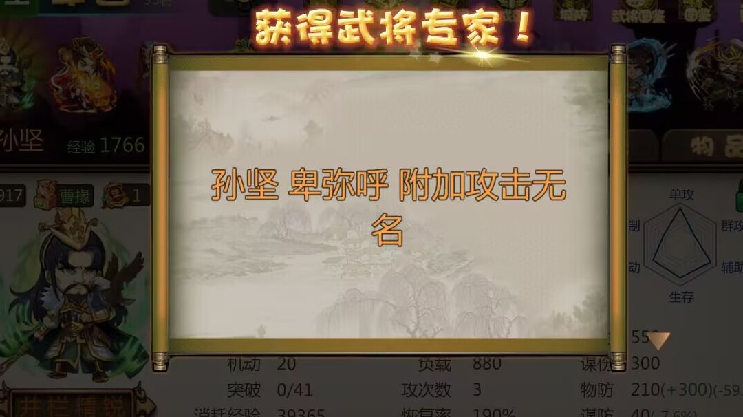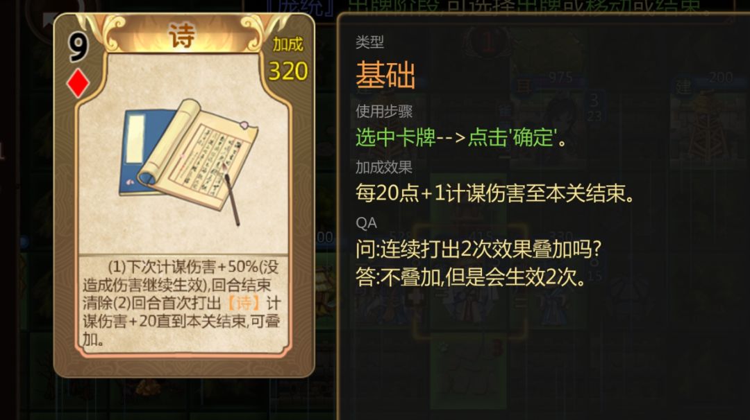 本攻略作为主线打法已落后时代,仅作为守城套路推荐 以下是我推荐的一个打法套路: 省流:主公孙权,武将庞统,想办法给庞统一张诗,庞统每回合用一次诗,然后连环,利用孙权主公技,诗的额外加成会越来越高(孙权主公技提供的额外加成上限是1000),1000额外加成的诗用一次就给庞统永久加70点谋伤,加上庞统的落凤,每回合就能加110点谋伤(没神时的数据),再配合额外加成越来越高的伤害计谋牌,输出非常高,并且