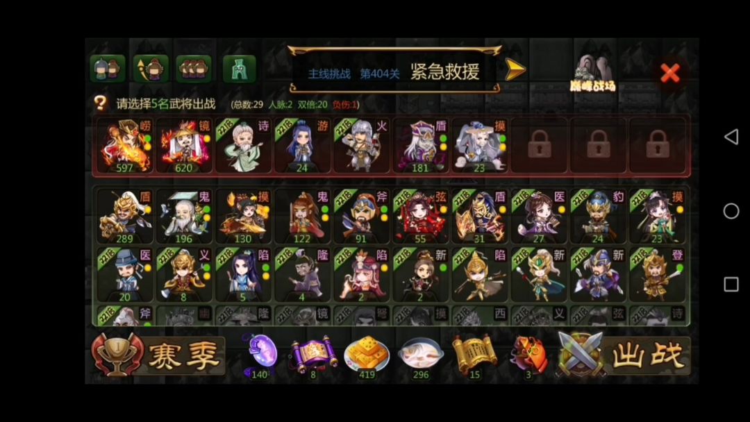 先打个预防针,本人为先打了三个月的萌新,可能没那么多游戏理解,确实是还比较喜欢这个游戏,特别是了解一些技能在某些关卡的作用还是很有趣的。 视频是打了一半发现忘记录了,也是提供一些思路,给一些像我一样微氪党的建议。八百关的三连续,也是主将都没了,童渊作用是破障碍,其他能破的都可以替代。然后关卡低王越自己就可以破。 本次主要为打塔特攻,提供给我没无名的微氪萌新。 兵种:攻城精锐 技能书:六韬(攻城走太