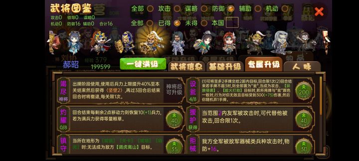 刘协【额外回合】【密诏召唤】【拆牌补牌】【闪中转站】推荐二级兵种辎重营/宦官/医官-刘协没什么过牌,放权又亏军费,第一本道德经基本也是给刘协的,就是常年蹲城镇的命,全图加成的辅助兵种都合适战鼓营-战鼓营虽然近,但高贵的猛攻也值得刘协靠护驾生存往前排钻或者强化刚召唤的后排友军也不亏白衣-善水特供水关牺牲武器、防具、宝物换军费,正好刘协攻击次数减1用不上武器,站位后排用不上防具,宝物也可以先给