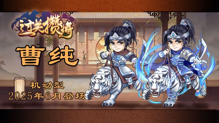 机动型武将“曹纯”即将在《过关攒将》5.14.0版本(预计25年5月底发布)中登场。 东汉末年曹操麾下将领,大司马曹仁之弟,侍中曹炽之子。“虎豹骑”的统领者之一,纯好学问,雅重纲纪,礼贤下士,一生戎马,战功卓越。 基础兵力400,神将满级技能效果(未突破,最终数值可能有出入)「横冲」:发动后下次移动消耗-2,但只能直线移动,回合限2次;若该次移动发动「骑袭」则伤害乘2.5倍。「豹袭」:发