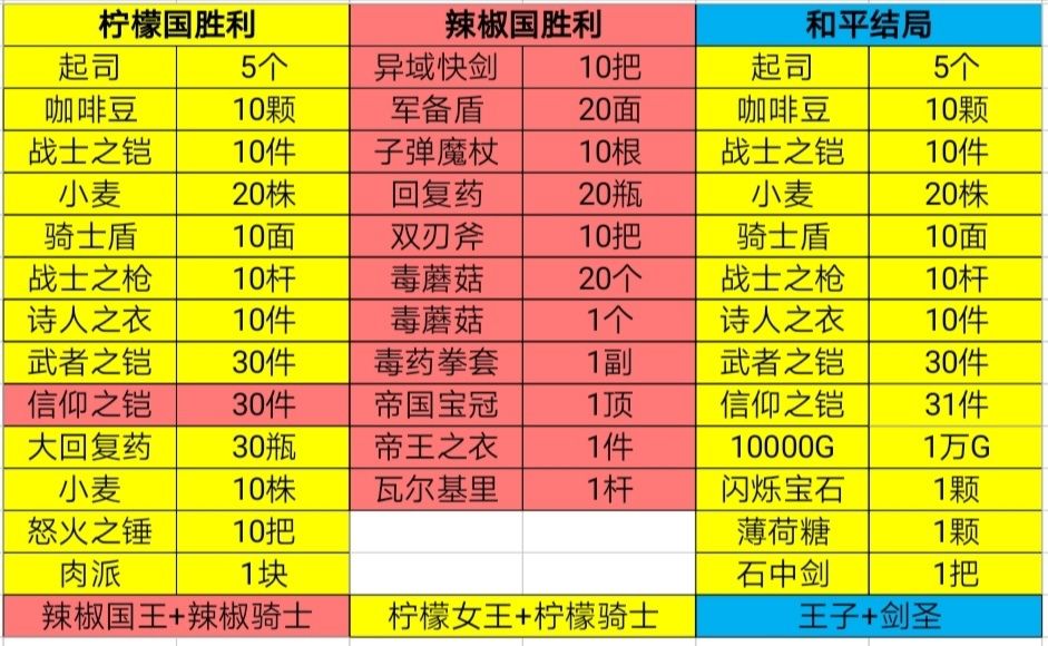 我发现帖子攻略里没有食物的用法攻略,而且还是有人不会食物的用法 下面我举例,食物可以冒险携带,当你携带相应的食物,就会必定出现相应的怪物。 起司—鼠人战士,鼠人将军 烤肉—强兽人 豪华大杂烩—饕餮 肉派—兽人提督 冰激凌—火蜥蜴王 煎蛋—凤凰 烤鱼—迦楼罗 火焰护符—火法师 冰冷护符—冰法师 光之护符—阴影之王 暗之护符—光之王 邪恶头骨—恶魔 棒棒糖—小恶魔 热可可—冰蜥蜴王 闪烁宝石—钻石巨人