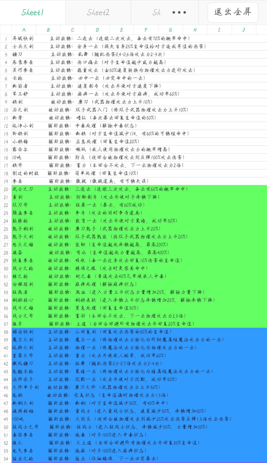 装备技能表(所有)