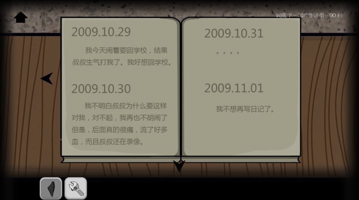 攻略已完善。如有需求再看。建议先自己动脑子玩玩看。有任何疑问都可以在下面留言。我会尽可能的解决。首先起手拿板凳。拿披萨。拿锅子。拿衣架。鞋柜移开鞋子老鼠洞前放披萨。板凳放衣柜底下。点衣柜上的箱子。移开左边录像带拿钢珠。锅放水池。打开龙头回收锅子。然后结合日记和录像带(这步我也不明白。试出来的)打开密码保险箱。密码1105。拿皮筋。拿蜡烛。点衣架。再用皮筋。视角对向天窗。使用弹弓。再用钢珠。回到地