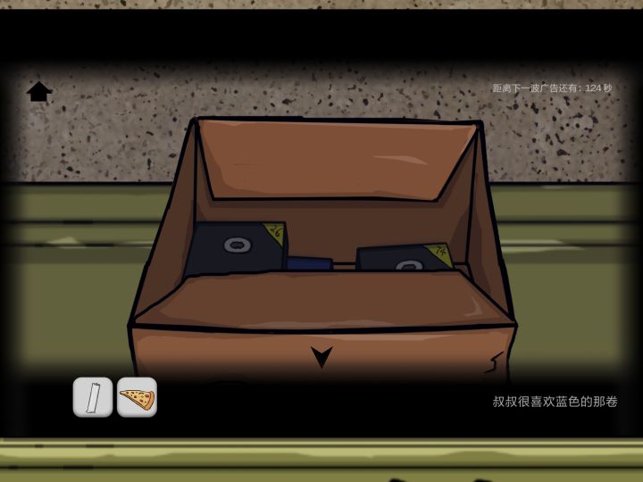 直接放攻略:把橘色小凳子拿走这里我省去了翻日记的步骤(你以为我会告诉你是因为我忘记截图了吗)然后去右边的房间点开衣柜拿走衣架然后打开另外一扇柜子,箱子的密码是1105,拿走蜡烛和皮筋(你只拿的走它们ಥ_ಥ)然后先点击小凳子在点一下地板把凳子放在那,就能踩着凳子去翻箱子了编号为26的录像带点着移到右边就能看到有一个弹珠了(假装有弹珠的图)去洗劫厨房,打开蓝色的柜子拿走水壶打开冰箱