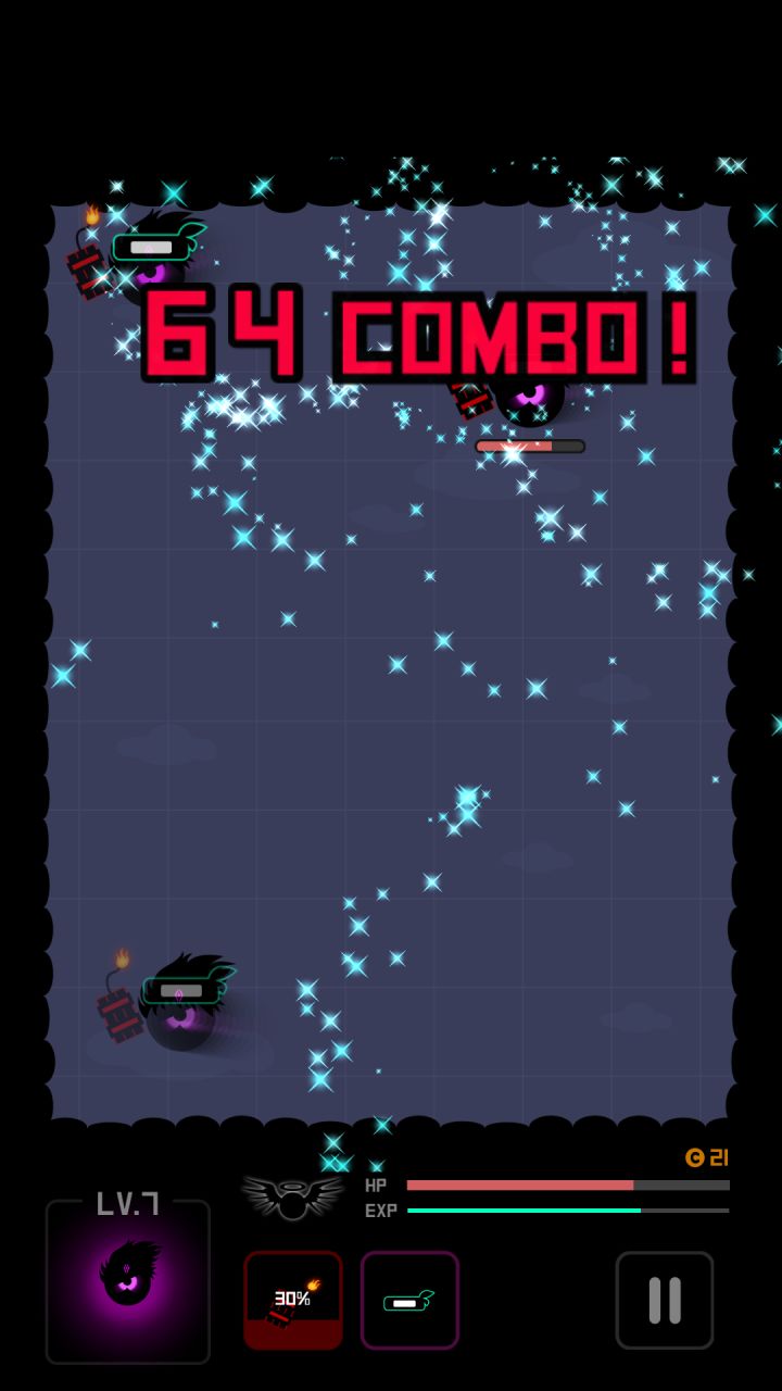 昨天分数是48,今天早上朋友就破了我记录玩到55。我就尝试下的心态再玩,谁知道一发人品爆棚,一路通关打到98。这个游戏技巧我觉得在于对武器的保留,要想通关多,每关都要保留武器是最基本的,金币尽量保留后期实用。还有一个进门时出什么兵的运气!这个确实是个好游戏!