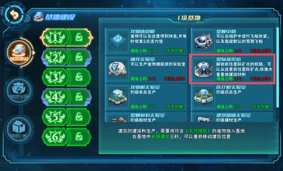 上篇攻略讲解了基地系统的基础玩法后,我们现在来看看基地系统的进阶玩法。【星际矿点】1级基地即可建造星际探索站建筑。建造完成该建筑后,即可通过该建筑进入星际矿点副本。进入星际矿点副本需要驾驶星舰。不过新手们无需担忧缺少星舰无法进入副本,建造星际探索站会赠送你一艘星舰(如果你此前已经通过建造星舰中心获得赠送的星舰,那么此处将不会再重复赠送)。而当你能够建造更高级的星舰后,你也可以选择更换驾驶你自己制