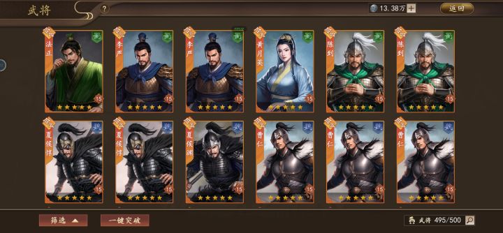 28500金币1500抽+免费和半价共1502抽,一上午抽了12个号,橙的数量在72到78个,没超过一次80橙的,大部分无一皇,最高2皇,桃园没齐过,图上是抽的最好的一号,说没锁卡我都不信,出橙率锁死1/20左右,排除一些无用废卡,好卡低的可怜,隔壁三战还有多少橙出核心卡呢,你们看看这里面有几个核心卡,这号76橙该出多少核心卡?