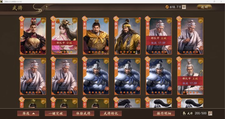 这是一款不肝不氪都能任意发挥的游戏,武将等级经验还能继承,让不熟悉武将的玩家切换主力特别方便,抽卡也很实际,时常有小惊喜!开荒无忧,打架酣畅,组队方便,福利多多