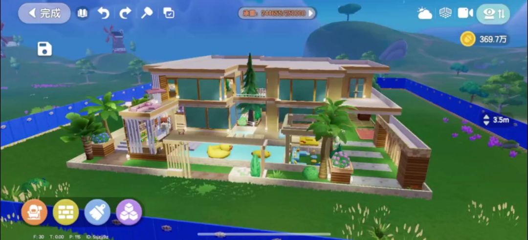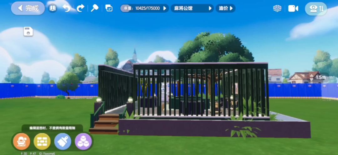 今天是游戏第9天 因为没有参与过内测,所以没想到承重问题这么影响体验感。 给大家分享一下我个人的解决方案 1.面积分配 目前一共开了9块地,几天玩下来发现小镇里大多玩家建的都是城堡或者别墅类建筑,容易出现房间很多很大,但是没有家具放的问题。因为我是中式建筑,所以我主要面积都给了院子,家具主要集中在两个房间里,这样不会出现房间空的问题 2.做空间规划 我房间里柜子做的比较多,都是用墙和地板做的,有