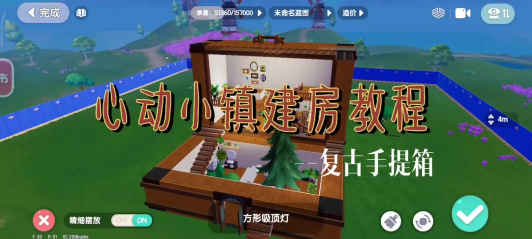 心动小镇新手建造攻略 一、建造步骤 1、首先玩家需要点击主界面手表图标的按钮,然后点击【蓝图】选项。 2、玩家只需蓝图界面下建造直接保存,同时也可以导入其他玩家的蓝图。蓝图功能不会改变建筑内部的家具和结构,玩家只需移动位置后点击确认摆放即可。 3、盖屋顶时只需先搭建一层楼梯就能开始铺屋顶了,屋檐也需要搭建在天花板上。 4、点击图中右侧的第一个按钮来调整屋檐的长、宽、高,下方的第二个按钮就可以调整颜