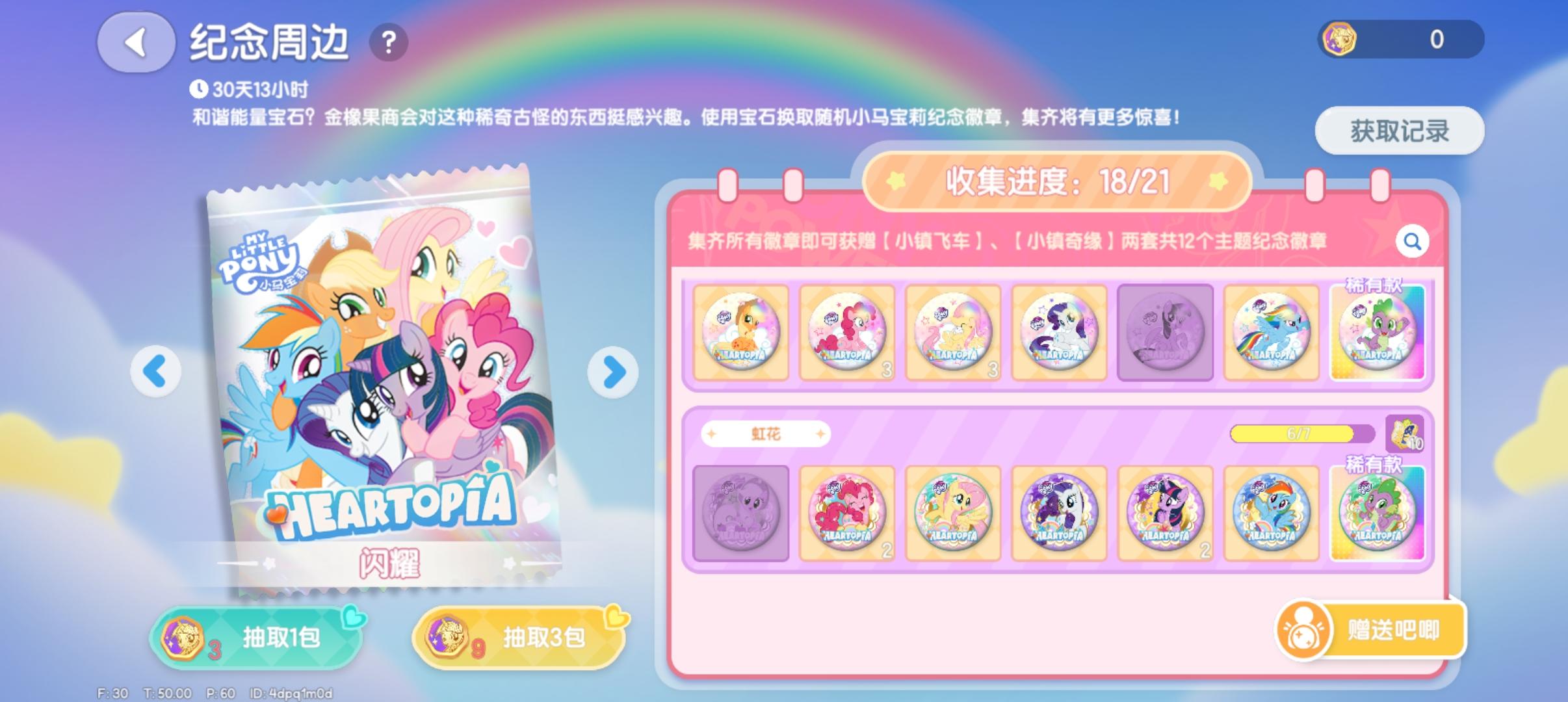 🧸兑换码:18点后更新 🌳溜溜橡木:灵橡松林(森林) 🌟无暇荧石:2号房前 【活动事件】 海钓 12:00 21:00 引虫出洞 11:00 20:00 泡泡机挑战 14:00 黄鸭跳跳台 15:00 异壳蟹捕捞行动 每日18:00 百鸟归巢事件每日17:00 灵能虫分散行动每日13:00 【礼包码兑换途径】 打开手表一设置一兑换码一输入礼包码 #心动小镇 #小马宝莉心动小镇