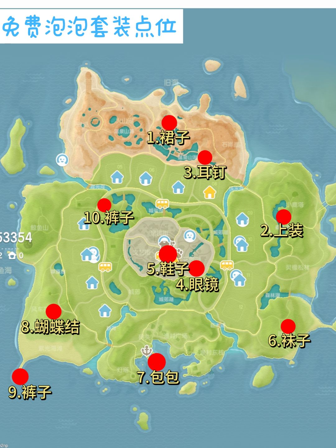 目前地图上一共是有十个衣服泡泡的,这是简单学院风套装的获取方式,分散在地图的各个角落,想要找齐是比较困难的,就算找到了想要触碰也不容易。 本篇就为大家带来全衣服泡泡位置及获取方法,每一个泡泡的地图位置和具体的触碰方法都给大家介绍了,大家可以对照图片位置查漏补缺!摸鱼 #心动小镇 #心动小镇创作计划 #心动小镇攻略 #心动小镇攻略征集 #游戏攻略