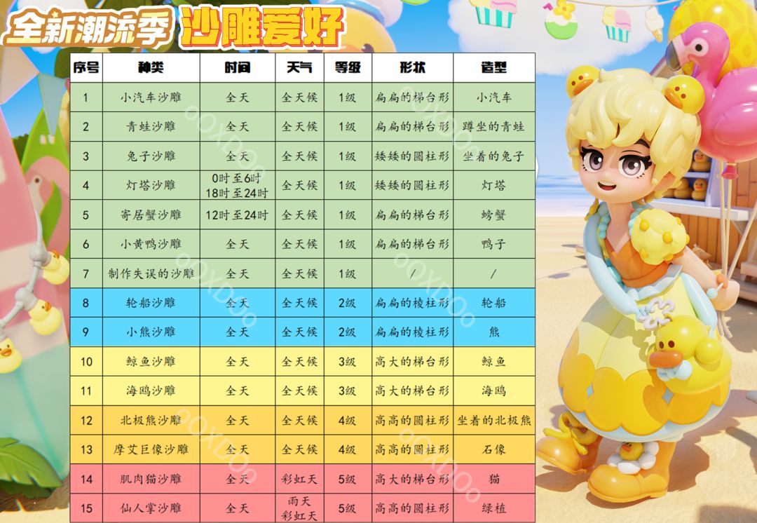 各位友友们,沙滩乐园潮流季已经开始啦,还在苦于沙雕造型选择的友友不要担心,本攻略将让制作失误不再出现,拒绝变成躺平海豹! 如果本攻略能对各位巧手大师有所帮助的话,也请友友们点👍和收藏。有不懂的地方也可以在下方留言,希望大家都能早日做出自己想要的沙雕。 #心动小镇 #心动小镇攻略 #心动小镇攻略征集 #沙滩乐园季创作计划 #心动小镇沙雕爱好