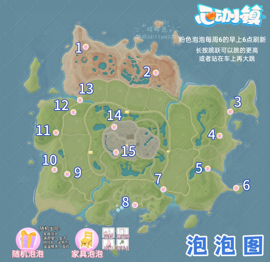 心动小镇全小黄鸭家具泡泡位置