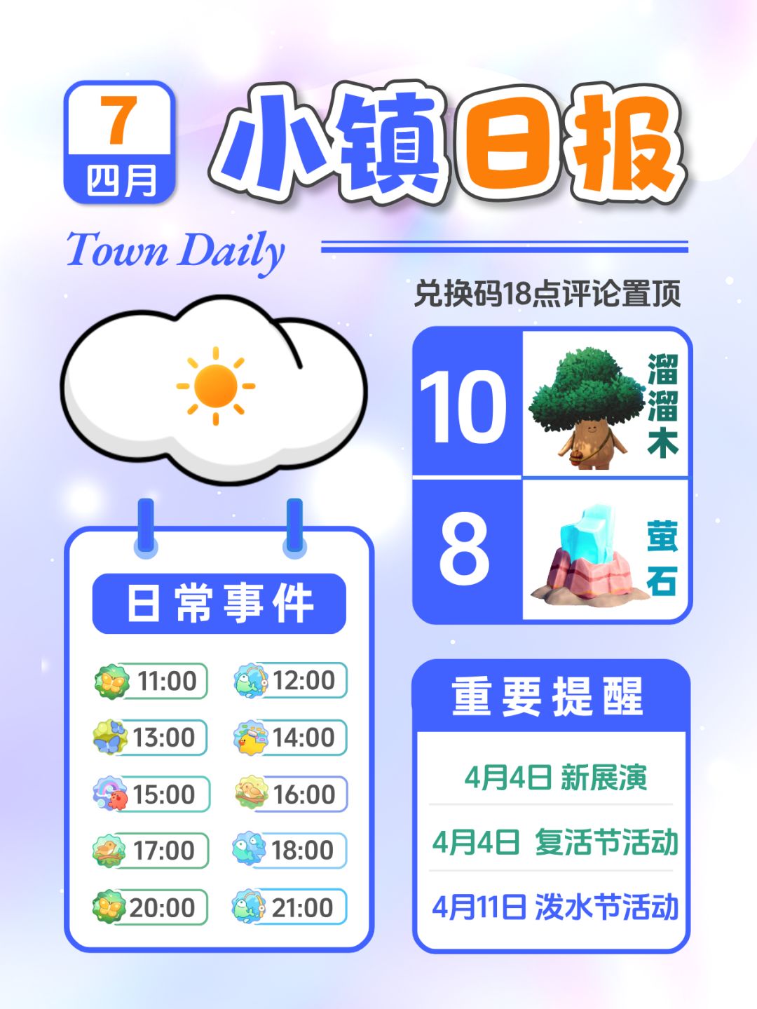 4月7日小镇日报溜溜木萤石 兑换码 每日更