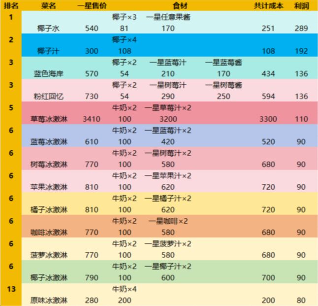 烹饪11级食谱利润评测+最新排名来啦!