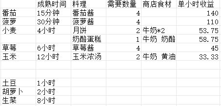 心动小镇14个新菜谱价格利润表