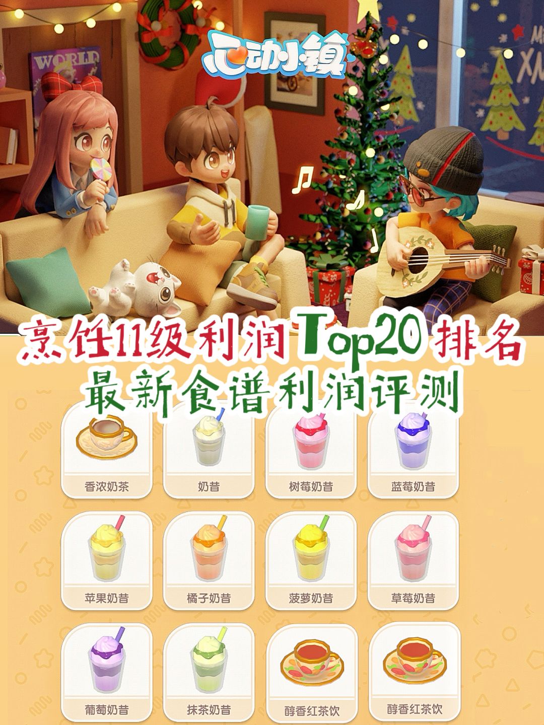 烹饪十一级食谱中的「抹茶奶昔、醇香红茶饮、香浓奶茶」这三种只需要购买材料,利润表现也很不错,超级适合懒人刷金币! 线条小狗系列、林里柠檬茶系列、圣诞小蛋糕、可可豆(园艺 12 级)可可食谱(巧克力酱,可可奶茶,可可奶昔)利润评测+Top20 排名更新:https://www.taptap.cn/moment/618141126200657790?utm_medium=share&utm_sourc