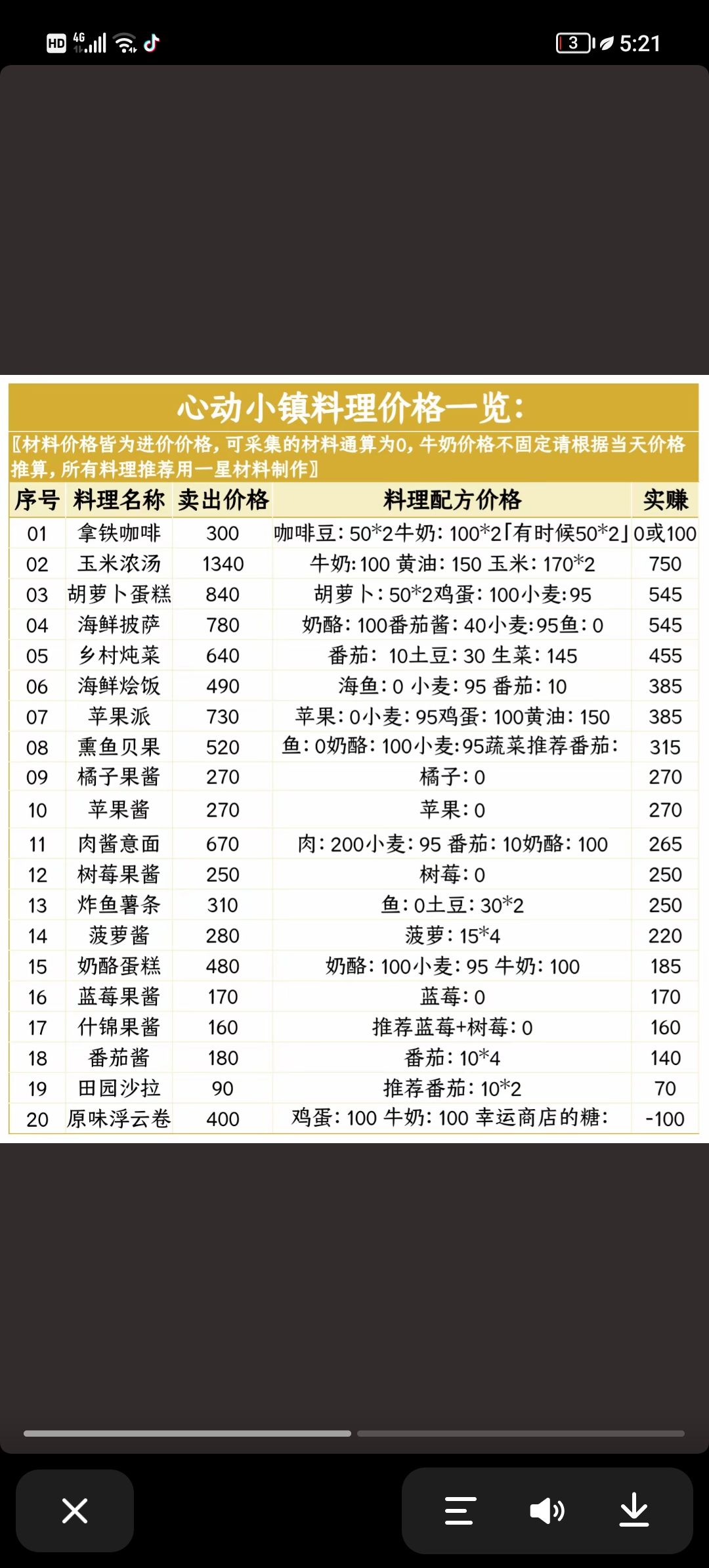 #心动小镇 #心动小镇创作计划 #心动小镇创作家激励计划 如图1表格大家可以自行参考一下 利润最高的是玉米浓汤