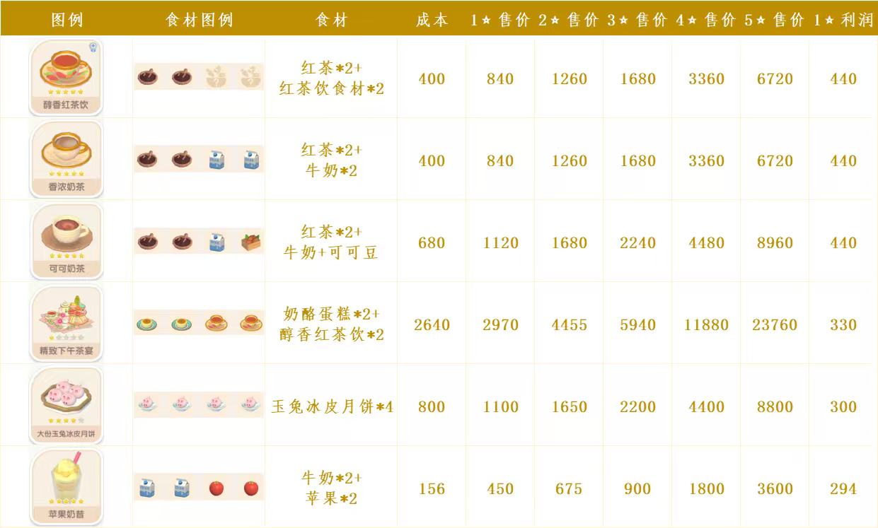 感谢 @墟棘 大佬整理的料理利润表格,本表格是基于此基础上计算得出。 注①:本表只计算单蔬菜料理,像乡村炖菜这种多蔬菜料理的蔬菜不在本表范围内。 注②:采集物(橘子,苹果,树莓等)和鱼类料理也不包括在内,因为很难计算价格。 注③:本表中的利润是“一个小时内种植的作物理论上最大的”价格,不足一个小时凑到一个小时计算,超过一个小时除到一个小时计算。 注④:本表中的利润计算方式是 (料理净利润-商店食材