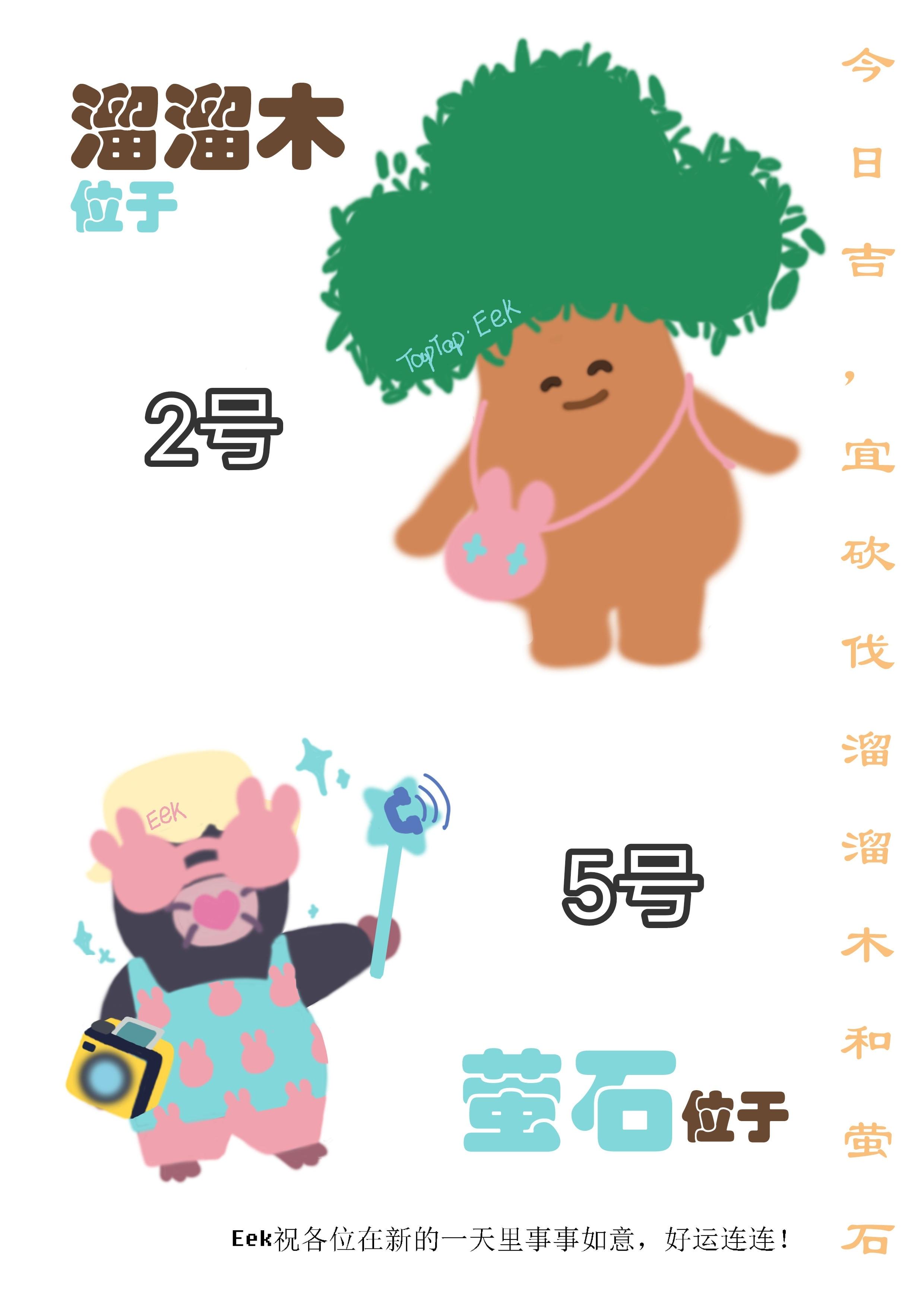 💎萤石位置:1号房前 🪵溜溜橡木位置:3号房前 🌤️天气:晴天 明天0点到6点下雨☔️ #心动小镇 #心动小镇创作计划 #心动小镇兑换码 #游戏日常 #发现好游戏