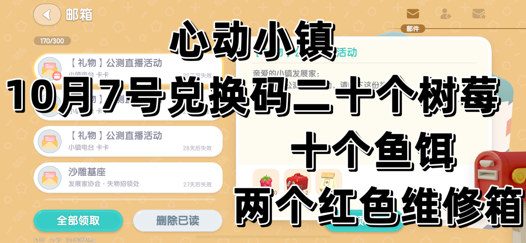 宝子们,10.7号最新直播兑换码可以领取啦,评论区可直接复制 10.7 XZXD2945 今日礼包码内容:20树莓、2维修箱、10鱼饵 点个关注不迷路!!! #心动小镇 #心动小镇创作计划 #心动小镇兑换码
