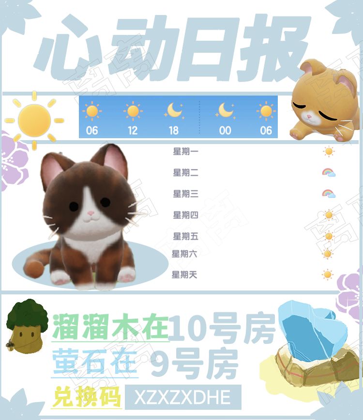 今日吉,宜采集萤石和溜溜木。 (兑换码7HEART73) [表情_灵光一闪]明天彩虹天预告 [表情_比心]本周泡泡位置 感谢阅读此次的Eek短讯。#心动小镇 #心动小镇攻略