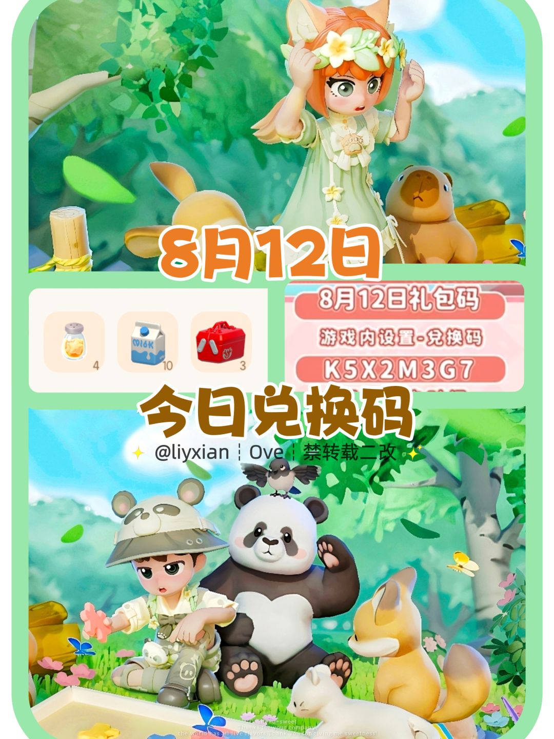 今日兑换码: K5X2M3G7 (当天24点前兑换) —— —— —— —— —— —— ①(8.12)溜溜橡木&无暇萤石 https://www.taptap.cn/moment/704220438498115750?share_id=a38629f48e78&utm_medium=share&utm_source=copylink △ 动物新邻季 潮流回忆活动(14个任务) 全攻略 http