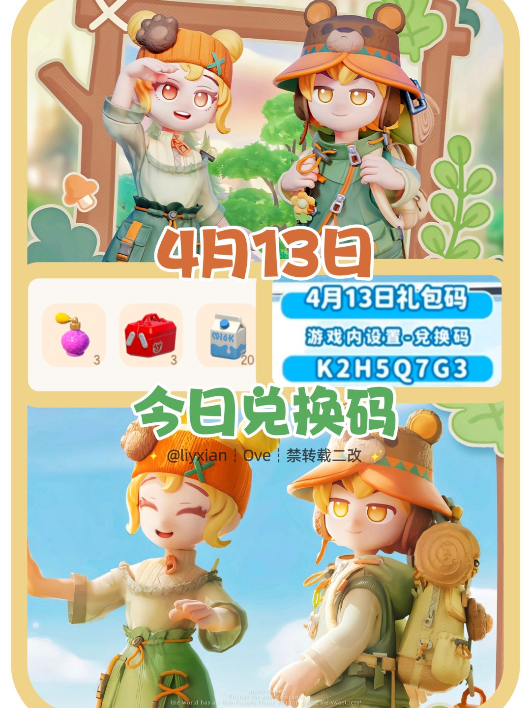 今日兑换码:J9M2H3Q7 —— —— —— —— —— —— 今日更新内容 攻略: ①(4.12)溜溜橡木&无暇萤石 位置: https://www.taptap.cn/moment/660006965547632374?share_id=b7baee2861ff&utm_medium=share&utm_source=copylink ② 春野露营地测评 第二周 文艺街头、春野此行 谜