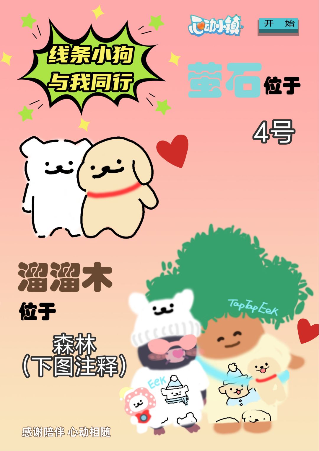 今日吉,宜采集萤石和溜溜木。 (兑换码HEART225) [表情_可爱]小金毛宣!! 明天更新或许延迟 感谢阅读此次的Eek短讯。#心动小镇 #心动小镇线条小狗联动