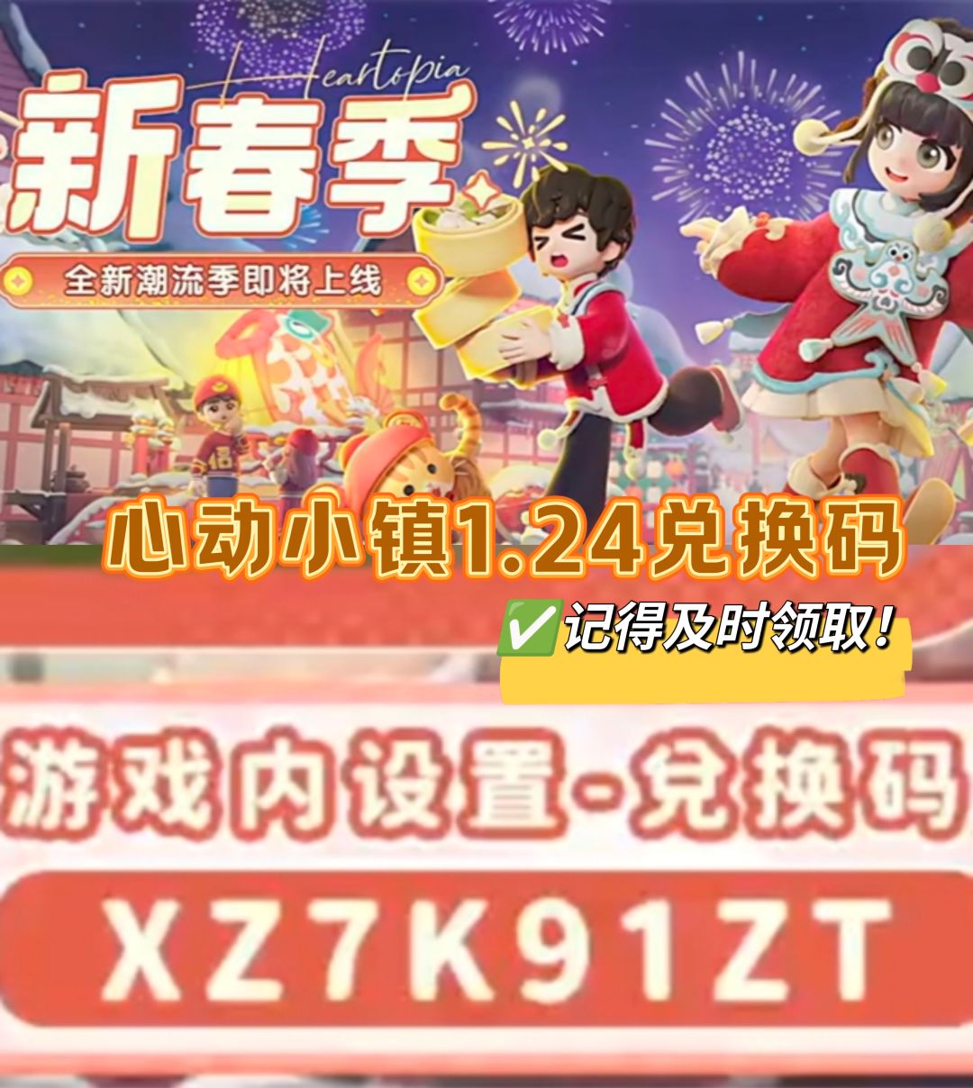今日兑换码:XD96X2T3 潮流季新春季攻略、1.16和1.23版本更新攻略、每日溜溜橡木和无瑕萤石、每日兑换码、#每周泡泡攻略都在主页哦[表情_比心]。 #心动小镇 #心动小镇创作计划 #心动小镇新春季 #心动小镇攻略 #心动小镇日常 #新春季攻略征集 #我在小镇过大年
